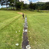 5kmは11:55スタート。病み上がりのため後ろの方から。5kmは1周目2km、2周目3kmの周回。1周したところで障害(ただの台)あり。みんな避けて通っているため同じ様に通過。久々のクロカンは体幹にこたえる。腹が痛い。暑さもハンパない。後ろのオッサンの息遣いが暑苦しい。となりのお兄さんはフラフラしている、と思ったらコケた。みんな苦しそうだ。終始のんびり走ったつもりだったが、ゴール後は暑くて動く気にもなれなかった。所々に立ち木があるが、木陰は全て人か場所取りのレジャーシートで埋まっている。日傘など日除けが必需品。