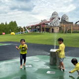 昼飯はお好み焼きと思ったがどこも休み。備北丘陵公園まで行って湖畔レストハウスで冷やしラーメンを食べてみたがイマイチ。目当てだったカブトムシドームは既に終わっており大型遊具へ。結局、その隣りのびっくりシャワーを気に入って3時間ぐらい遊び続けた。