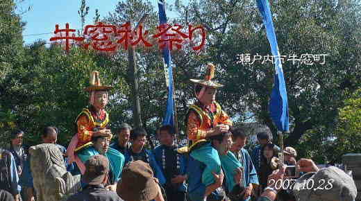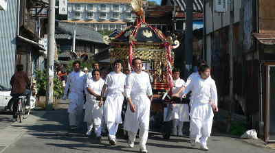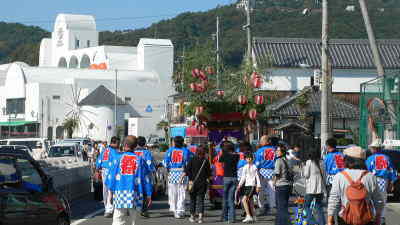 エーゲ海を思わせる風景と古い日本の街並み とが調和したエキゾチックな町「うしまど」。 牛窓の秋祭りは、昔の歴史を想起させます。 瀬戸内市牛窓町の「牛窓秋祭り」は 牛窓地区の総氏神・牛窓神社の秋季例祭です。 神輿1台は氏子地区を巡行し、 船形だんじり5台、太鼓台2台が終日 町内を練り歩きます。 特に船形だんじりは彫刻の粋を 凝らしたもので、港が殷賑を極めた頃 主に江戸時代,港の繁栄振りが偲ばれます。 牛窓神社の末社、御霊社の「太刀踊」、 同疫神社の「唐子踊」を見学して この地に伝わる神宮皇后伝説や 朝鮮通信使の寄港地であったことから 歴史に彩られた牛窓を知ることが 出来ます。 |