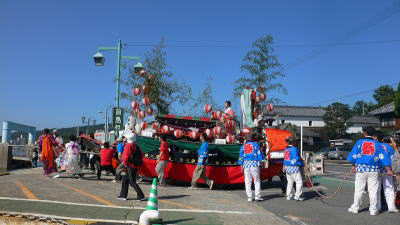 次の便で東町の船形だんじりと西町の太鼓台も前島に渡ります。 |