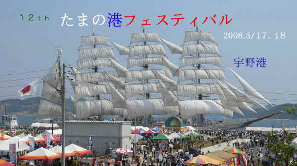 玉野市ならではの船と港の大型イベント「12thたまの港フェスティバル」が5月17日、18日宇野港一帯で 盛大に行われました。両日の多彩なイベントの一部と19日帆船「海王丸」の歓送の模様を撮影しましたので ご紹介します。 上の画像は、宇野港大型客船用バースに係留中の総トン数2,556トン全長110.0mの練習帆船「海王丸」。 17日に実習生等のセイルドリル・展帆作業によって総帆数36枚が全開した優美な姿です。 平成元年竣工のこの「海王丸U世」には海技教育関係の大学生等78人が実習訓練を受けています。 「海王丸」セイルドリルと登檣礼」の大きな画像(800×450ピクセル、100KB)は Blog「とっさんの備忘録」でご覧になれます。 |